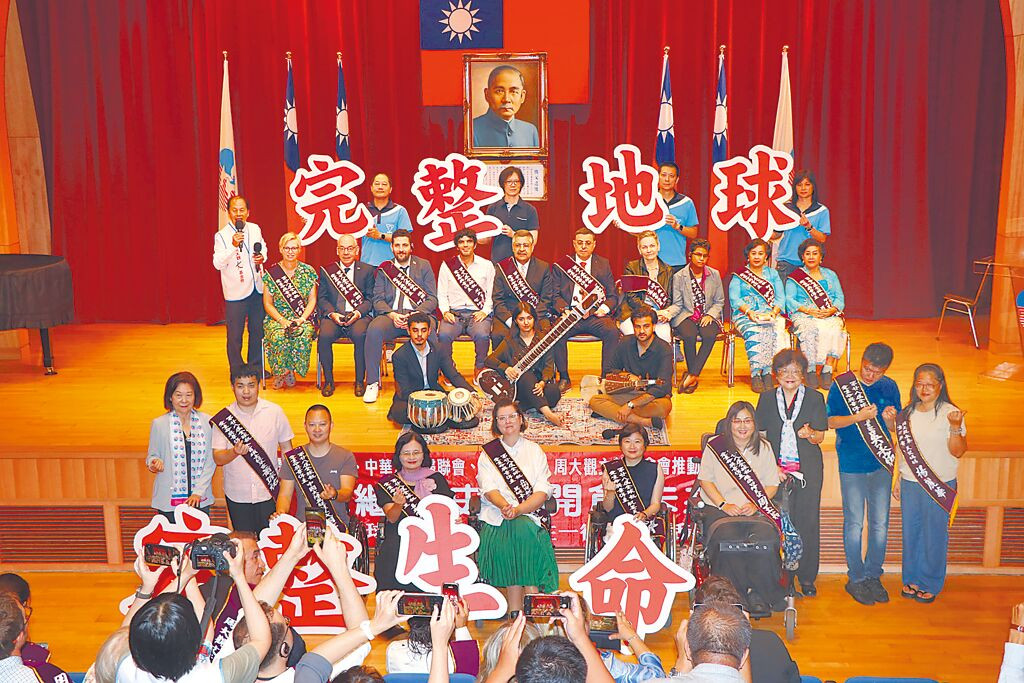 周大觀文教基金會26日帶領2025年全球熱愛生命獎章得主至婦聯會交流,並與華興中學師生代表對話,分享勇敢衝破逆境的生命故事。(蔡明亘攝)