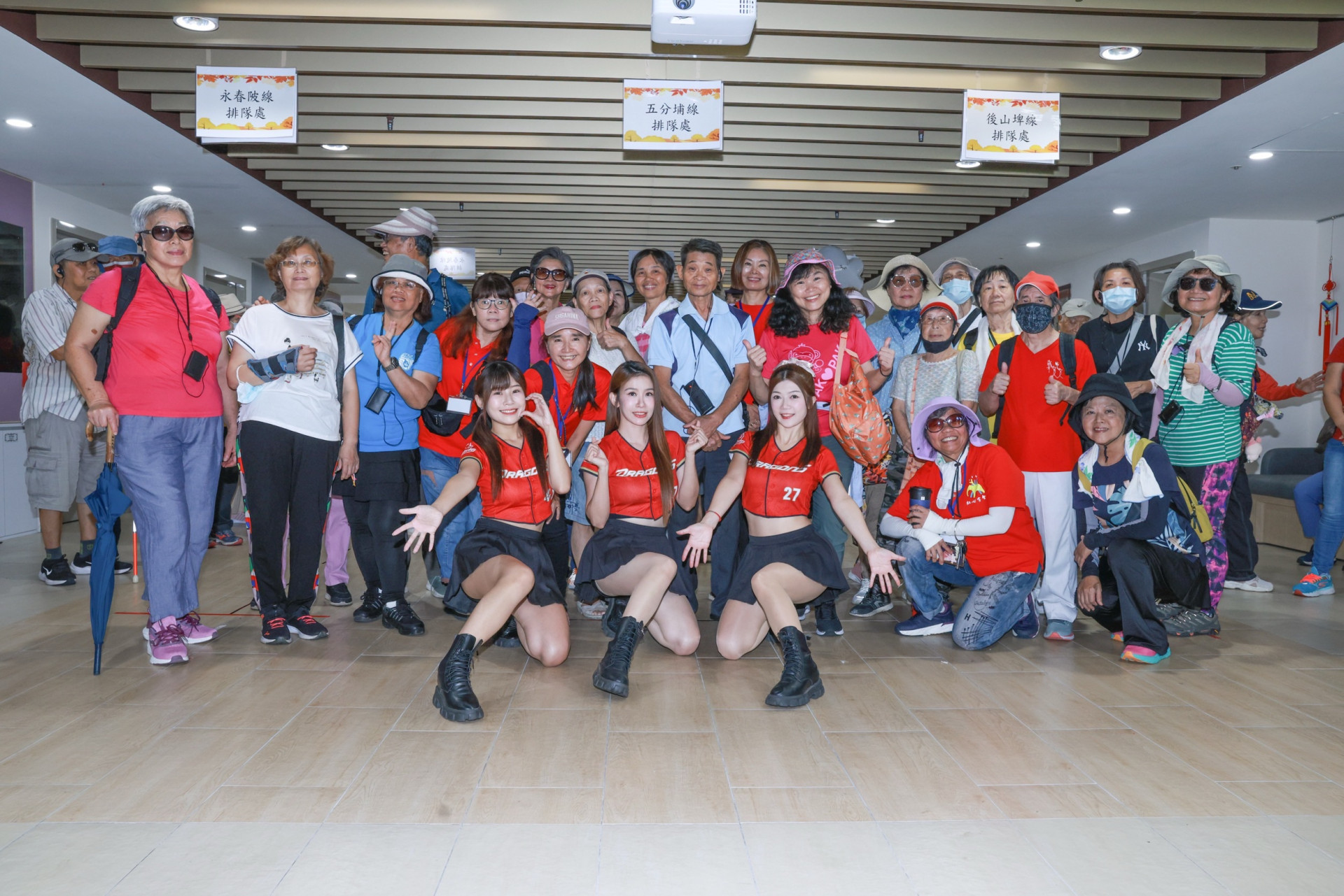 照片說明:味全龍啦啦啦隊小龍女-馬妹、琪琪、星岑出席紅心字會「重陽敬老公益活動」吸引近150位長者到場。圖/紅心字會提供