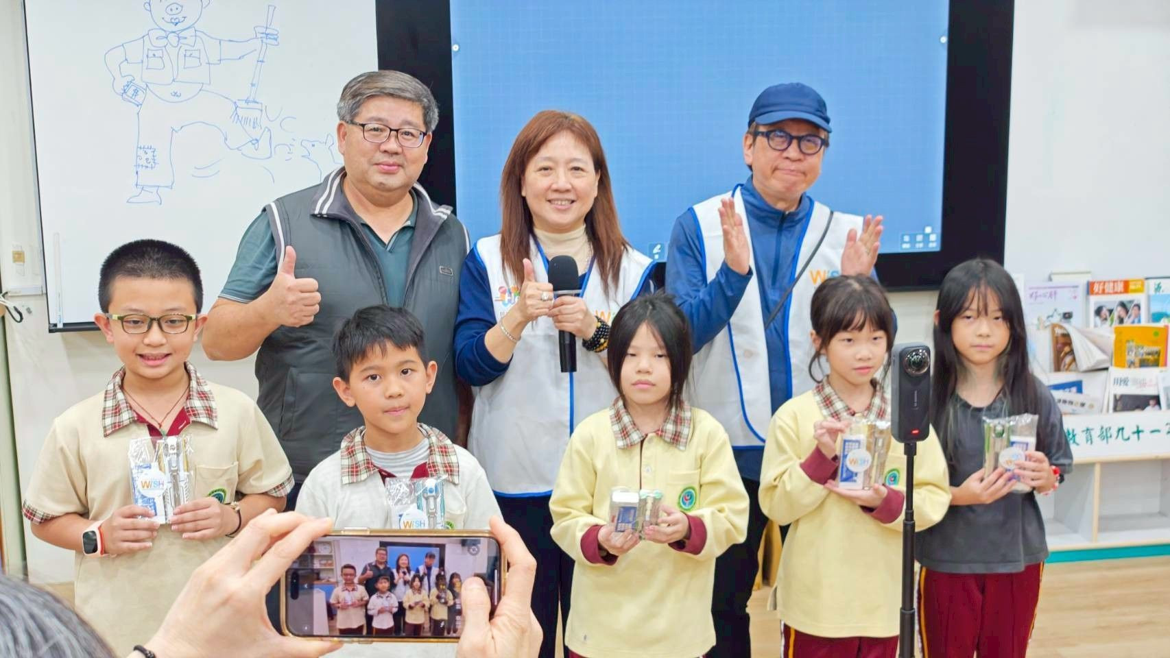 在全程一個半小時的教學分享中,課程內容充滿了互動性與趣味性。志工老師們透過引導式的教學方法,帶領學生們從日常生活中觀察、分析廣告,並鼓勵他們發揮想像力,嘗試為自己喜歡的事物設計廣告。現場氣氛熱烈,孩子們踴躍舉手發言,他們天真爛漫又充滿創意的回答,讓志工老師們也深受感動。這不僅是一堂廣告課,更是一場關於夢想、溝通與表達的啟蒙課。