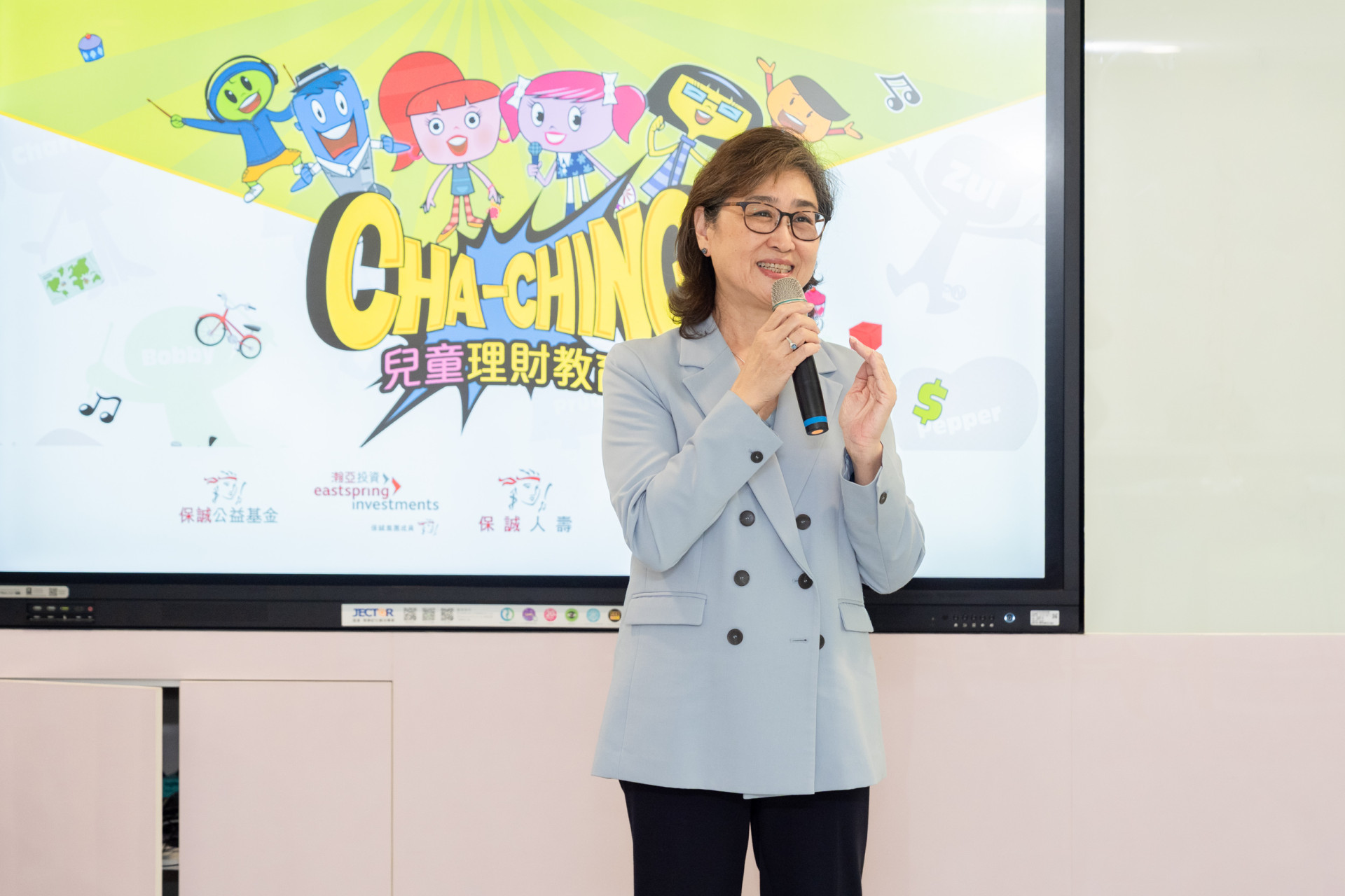 瀚亞投資大中華區總裁暨瀚亞投信董事長王伯莉致詞時指出,金融圈向來流傳「天上不會無故掉餡餅」這句話,沒有穩賺不賠的投資。而國人傳統家庭觀念不愛談錢,但金錢無所不在,與生活未來幸福指數習習相關。瀚亞投資與地方政府、學校攜手,長期投入「Cha-Ching兒童理財教育計畫」,期待讓孩童從小建立正確的金錢觀、責任感與行動力,走向自主成長的未來。