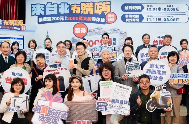 「來台北有購嗨!」活動於12月18日抽出「月月抽」首批幸運得主,包括台積電股票一張、君悅101跨年煙火總統套房與LUXGEN n7電動車等超值大獎;活動迄今累積登錄金額將逾10億元,北市府除宣布加碼抽美國雙人來回機票外,只要民眾於耶誕至跨年的歡樂節慶期間消費(114年12月24日至115年1月1日),抽獎機會再翻倍,歡迎民眾把握耶誕佳節前往北市遊逛,讓北市創造你的幸運、放大你的幸福。