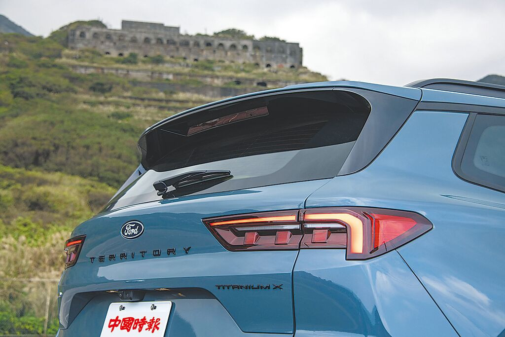 Ford Territory車身外觀設計承襲自經典車款DNA,LED 三柱式流光序列尾燈來自Mustang。(陳大任攝)