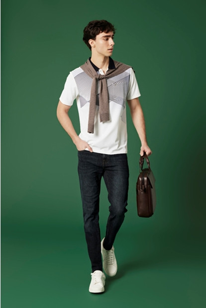 Cartier品牌摯友阿爾諾·法盧瓦(Arnaud Valois)配戴 Santos 腕錶,向經典歷史表款致敬。這款腕錶以幾何線條、純粹設計與技術革新巧妙融合,將經典風格與開拓精神完美結合。他的造型更搭配 Cartier Geometry & Contrast 風格的扣眼與袖扣,透過巧妙運用造型與圖騰,營造對稱與非對稱、平行與透視的對比效果,加上鮮明的色彩對比,呈現大膽且前衛的設計美學。最後,他以 Trinity 白K金陶瓷戒指點綴整體造型,低調卻不失精緻。