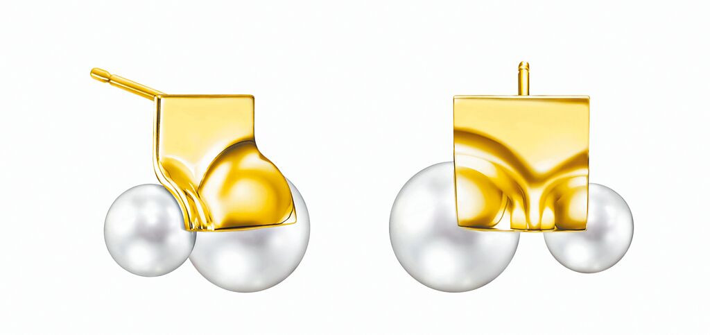 TASAKI M/G SQUARE LEAF黃K金淡水珍珠耳環,11萬2000元。(TASAKI提供)