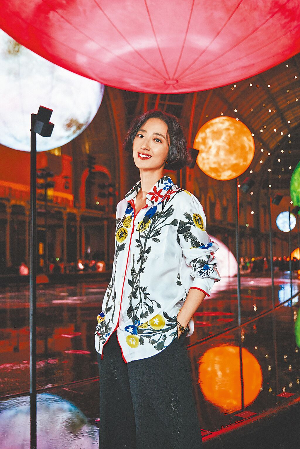 品牌大使桂綸鎂以一身充滿中性自然的花朵印花襯衫裝束,率性自在欣賞Blazy的首秀。(CHANEL提供)