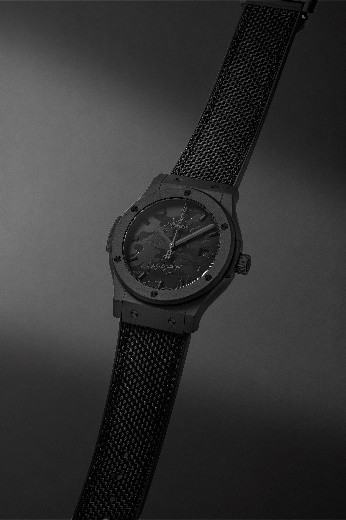 全球限量 300 只的聯名腕錶,處處可見精心設計的細節。42 毫米錶殼以啞光黑色陶瓷打造,品牌獨有的硫化工藝形塑立體迷彩圖騰;黑色魅力延伸至融合織品與橡膠材質的錶帶,在深邃色調中展現張力與層次美感,完整詮釋宇舶錶引以為傲的材質融合工藝,體現品牌核心精神: 融合的藝術(Art of Fusion)。
