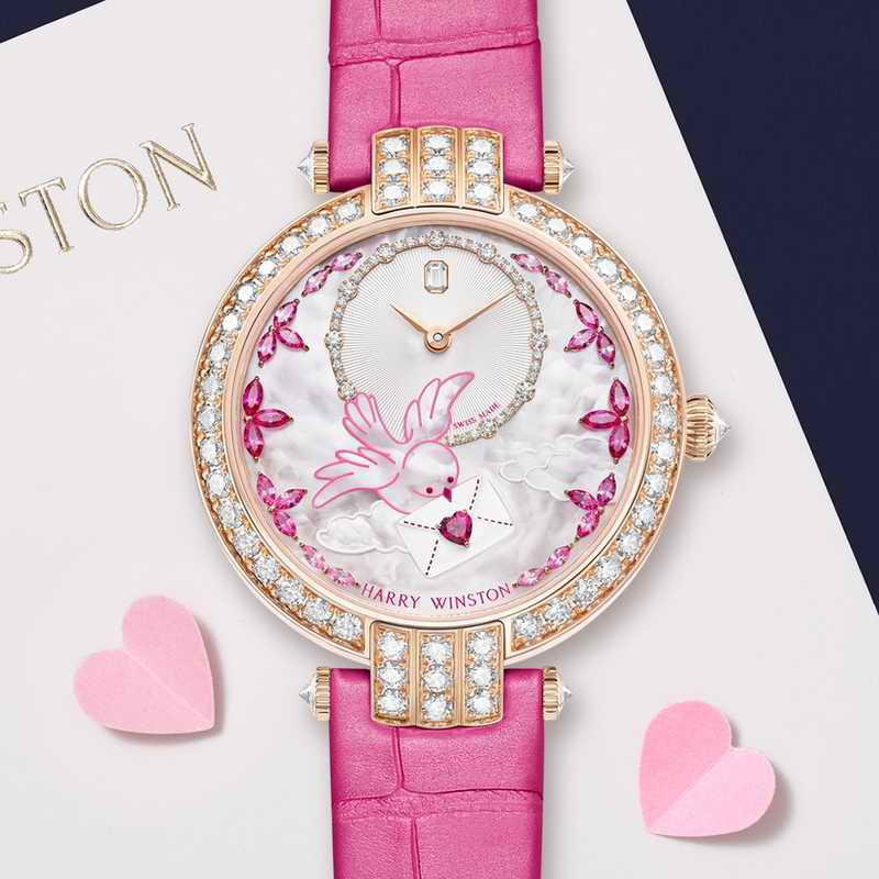 限量傑作全新海瑞溫斯頓卓時 Premier 情人節腕錶,將紅寶石、粉色藍寶石與凌空飛翔的唯美白鴿,交織成璀璨的浪漫頌歌。這份珍藏,迴響著隨歲月愈發閃耀的愛情之美。