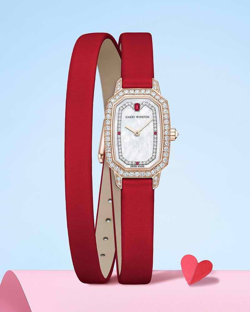 以鮮明紅色系演繹經典,海瑞溫斯頓印記 Emerald 腕錶以紅寶石、鑽石與珍珠母貝打造,捕捉熱情與華麗。獻予生命中每分每秒都讓您滿懷愛與喜悅的摯愛。