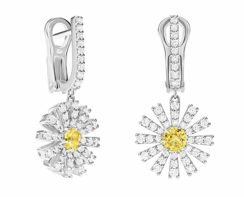 DAMIANI Margherita瑪格麗特系列18K白金黃色藍寶石與鑽石垂墜式耳環,黃色藍寶石總重.0.58拉,鑽石總重0.99克拉