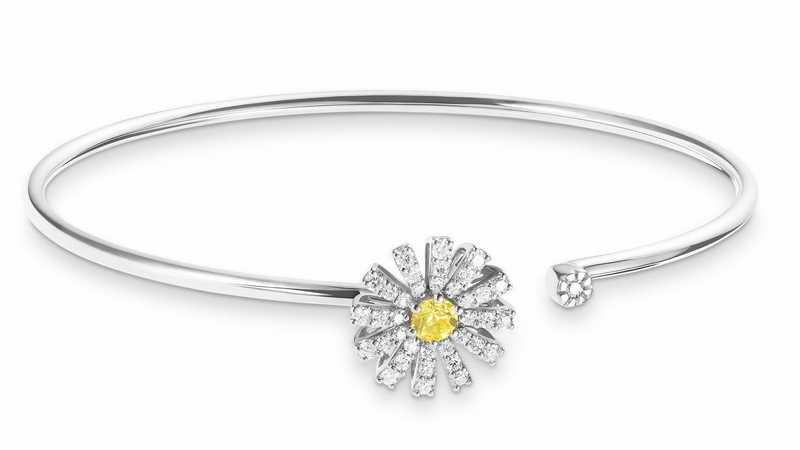 DAMIANI Margherita瑪格麗特系列18K白金黃色藍寶石與鑽石手環,黃色藍寶石總重0.21克拉,鑽石總重0.32克拉
