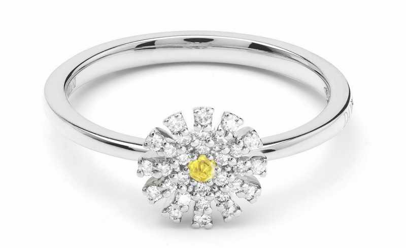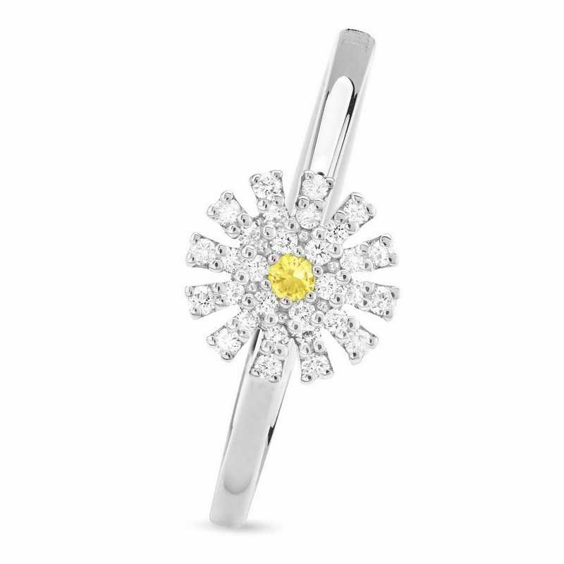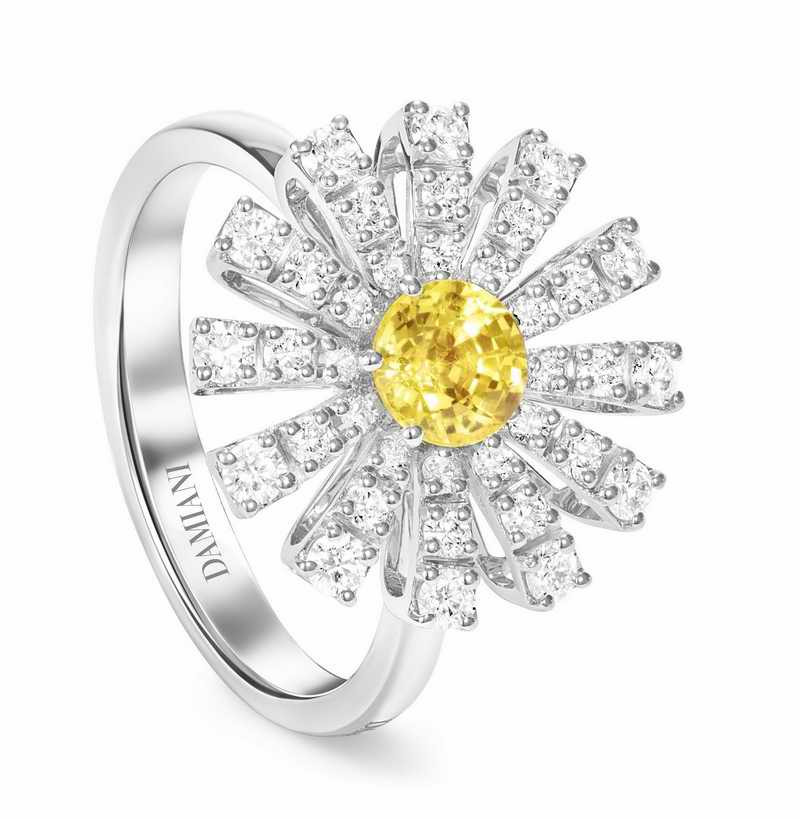 DAMIANI Margherita瑪格麗特系列18K白金黃色藍寶石與鑽石戒指,黃色藍寶石總重.067克拉,鑽石總重0.55克拉
