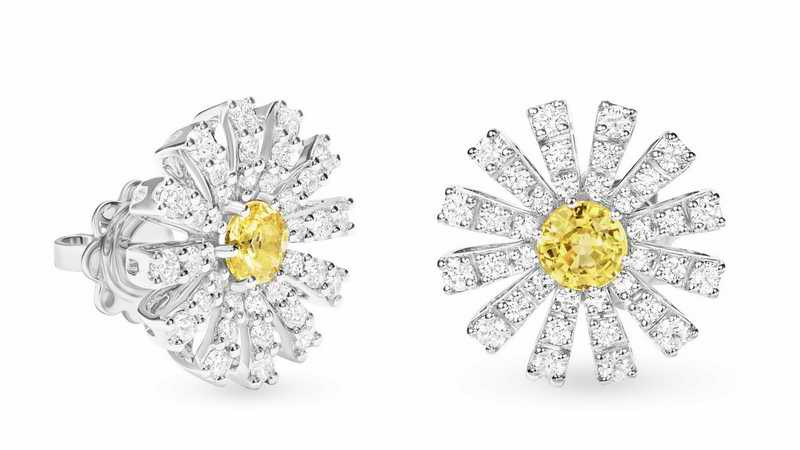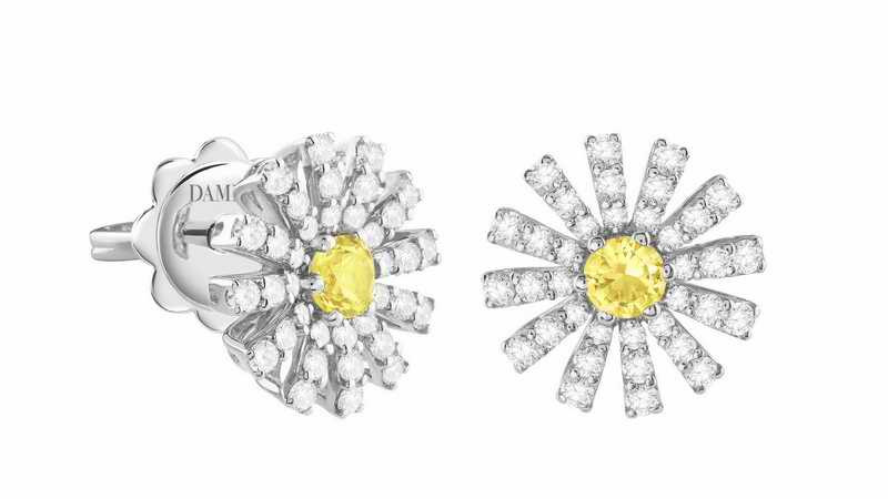 DAMIANI Margherita瑪格麗特系列18K白金黃色藍寶石與鑽石耳環,黃色藍寶石總重.0.24拉,鑽石總重0.42克拉