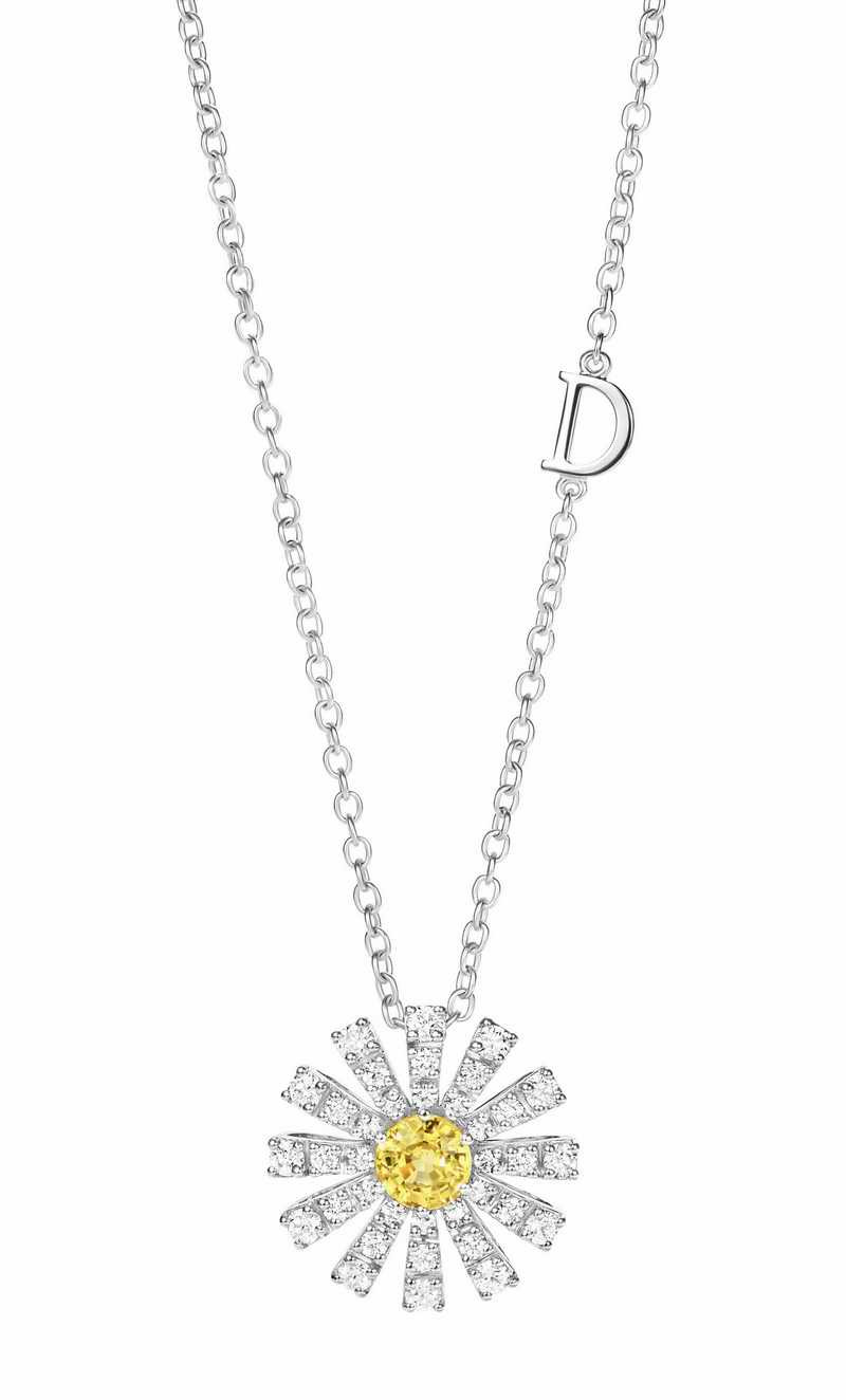 DAMIANI Margherita瑪格麗特系列18K白金黃色藍寶石與鑽石項鍊,黃色藍寶石總重0.21克拉,鑽石總重0.31克拉