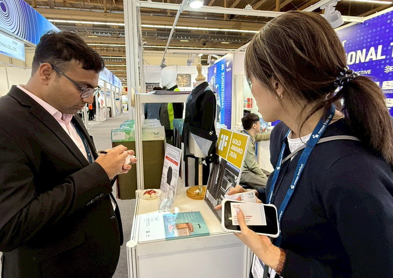 此次參展以TexBonder 防水時尚外套作為推廣科專研發成果的亮點載體,藉實體服裝展示與技術說明,吸引現場買主多方洽詢;含括秘魯業者Digital Performance Printing (DPP)、捷克專業防護裝備廠商 Holík International,以及印度產業用紡織品大廠 JAI KANHAIYA GROUP 等,皆對紡拓會「單一材質可回收」的技術實力大表讚許,國際買主們一致認為TexBonder 技術與材料具有優勢,有極佳的市場潛力;不僅是對紡拓會創新設計與研發能量的肯定,更彰顯經濟部產業技術司科專計畫在推動台灣紡織產業升級與永續發展的重要貢獻。紡拓會將以科專創新研發實力,持續朝向高值化與永續發展邁進。