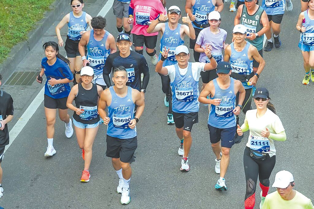 富邦集團董事長蔡明忠今年第12度完賽臺北馬半程馬拉松,期許跑者們並肩前行,為健康與永續而跑。(富邦金控提供)