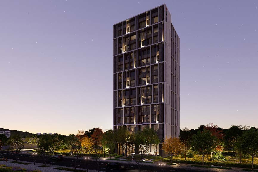 「佳元織川」格局規劃26-43坪,理想生活的起點。(外觀3D示意圖/佳元建設提供)