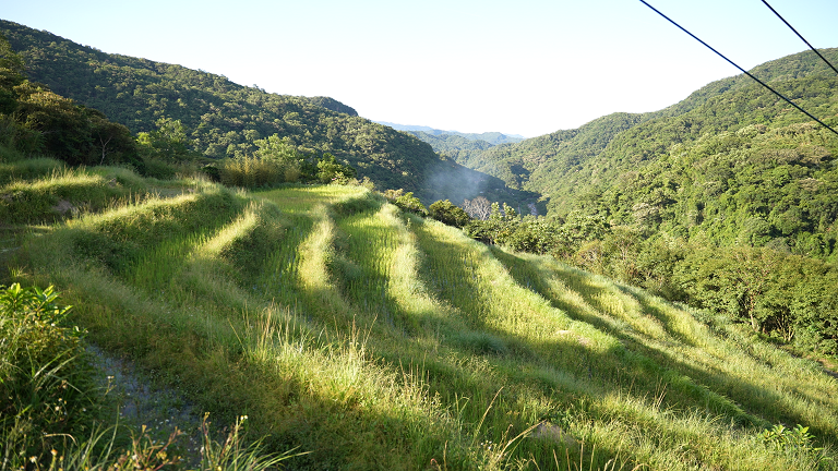 午後的陽光灑下,梯田閃閃發亮。旅人脫鞋走入田間,泥土包裹腳底,微涼中有生命的脈動。導覽員說,這裡的田是活的。水中有青蛙、草間有花、天空倒映在田裡,每一格田都像畫布。