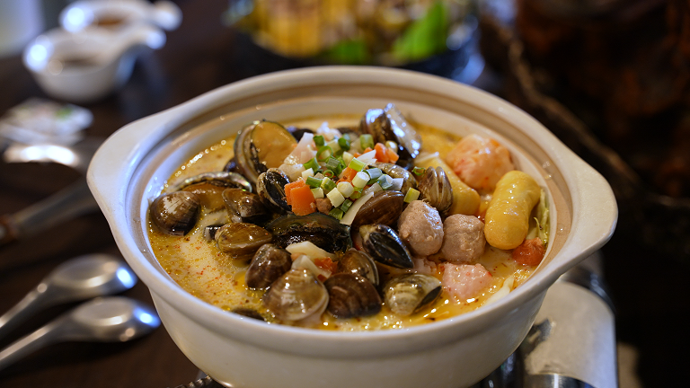 奇園自然料理的鮑魚牛奶鍋,湯濃味美