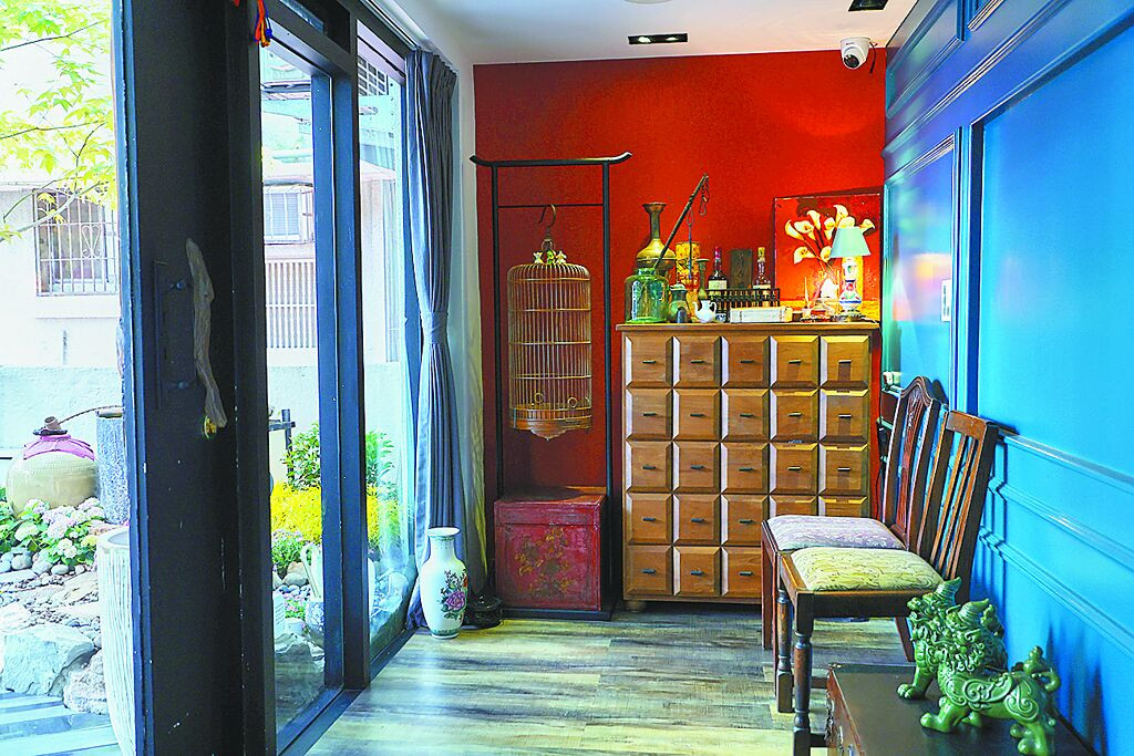 餐廳內的「升官發財區」,擺放著象徵庇蔭的官帽椅與寓意好運的寶藏箱,深獲賓客喜愛。(陳信翰攝)