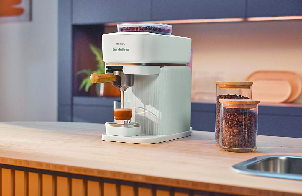 新光三越Philips首賣一滑極萃義式咖啡機Baristina BAR 302/20,特價1萬4900元,贈3000點skm points。(新光三越提供)