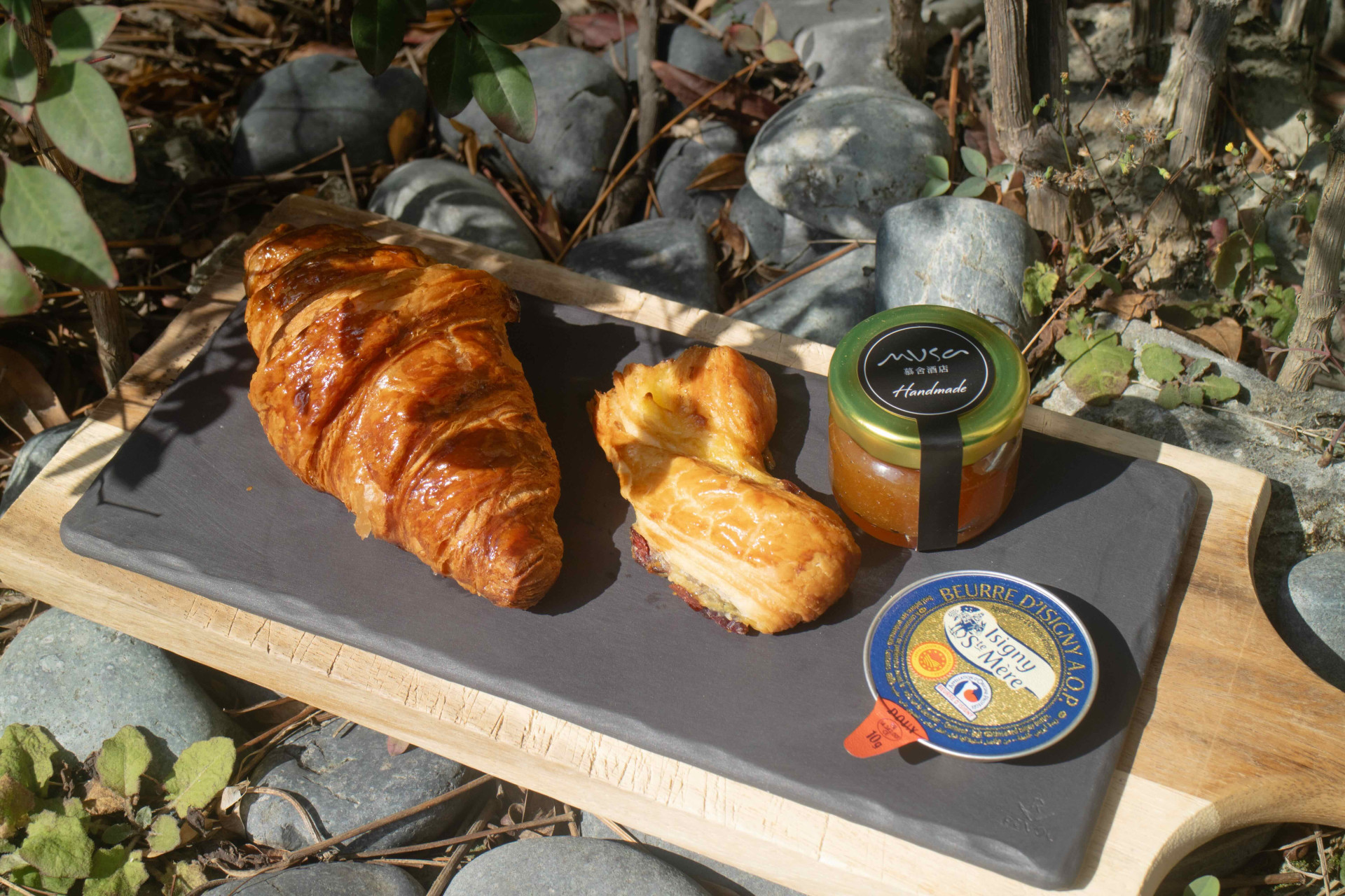 當微酥可頌與精選烘焙在陽光下閃爍著琥珀色的光澤,一場感官的愜意便悄然開始。主廚嚴選法國諾曼第Isigny Sainte-Mère AOP 頂級奶油,其特有的榛果醇香與綿密質地,搭配手作的時令果醬,將酸甜與乳香完美交疊。在每一次的塗抹與品味間,彷彿聽見來自大西洋岸的呼吸聲。
