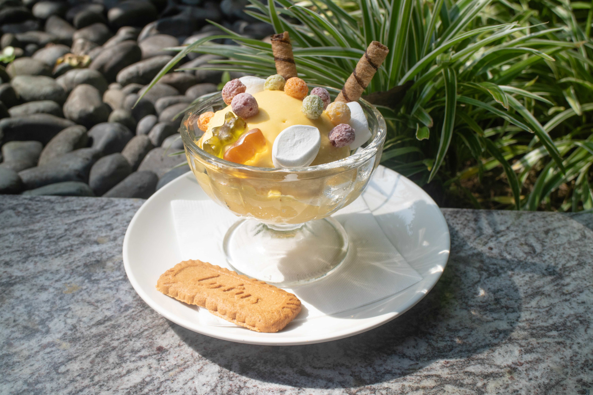 每一球冰淇淋都點綴著小熊軟糖、脆迪酥、Lotus 餅乾、棉花糖與綜合穀片,像在杯中跳動的童心與色彩,喚醒每一位旅人對純粹快樂的渴望。