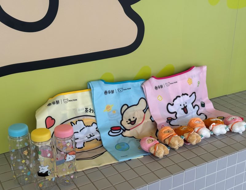 除餐飲內容外,本次活動亦推出多款加購型周邊商品,包含絨毛公仔盲盒、環保袋及冷水瓶等。其中,六款絨毛公仔以壽司、鮮蝦與茶碗蒸等造型呈現角色形象,結合餐飲主題提升整體趣味性。消費者只要加入會員並於門市消費滿額,即可依門檻加購相關商品。